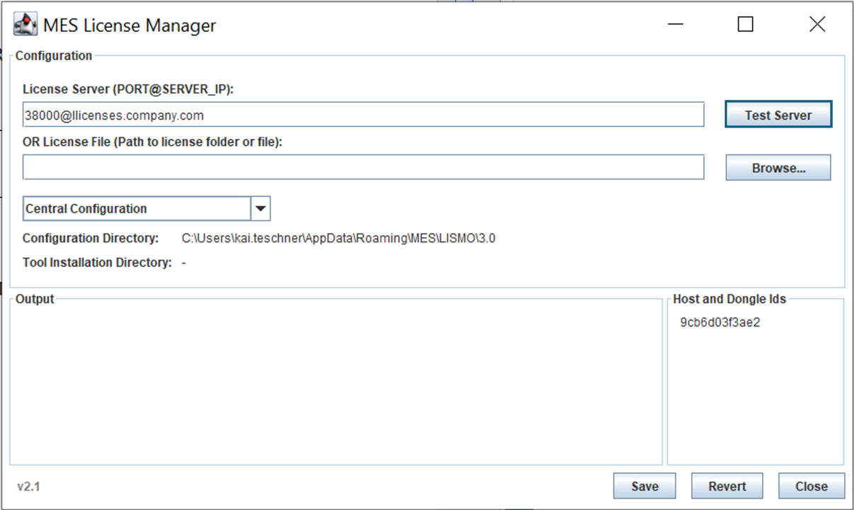 The MES License Manager for configuring the licenses for all MES tools can be started during the installation and in the MES tool directory by double-clicking "LicenseManager.jar."